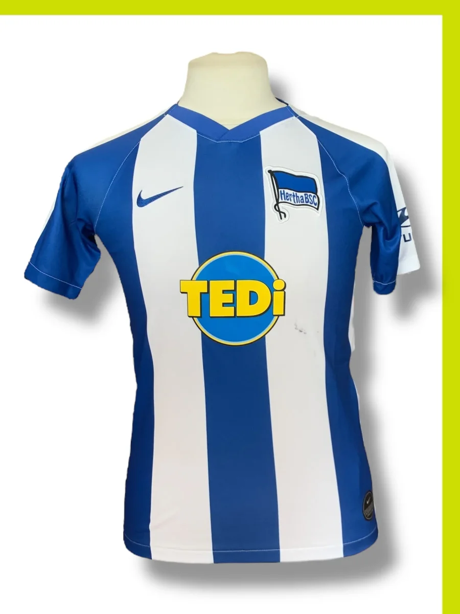 Le Hertha BSC, fondé en 1892, a une riche histoire dans le football allemand. Ce maillot, porté lors de la saison 2019-2020, a vu l’équipe évoluer dans la Bundesliga, affrontant des rivaux de taille et vivant des moments mémorables. Chaque match était une occasion de vibrer avec les supporters, et ce maillot a été le témoin de ces instants de passion et d’émotion.