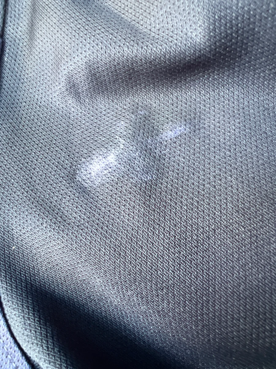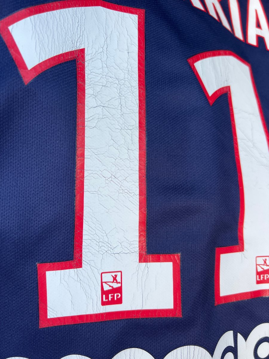 Zoom produit : Maillot en état moyen flocage abimé, une trace de colle sur la manche