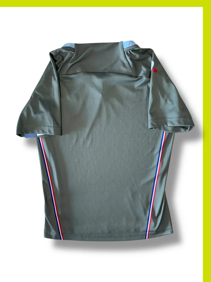 Zoom produit : Maillot en bon état. présentant une petite tâche d’encre sur le A de Natixis