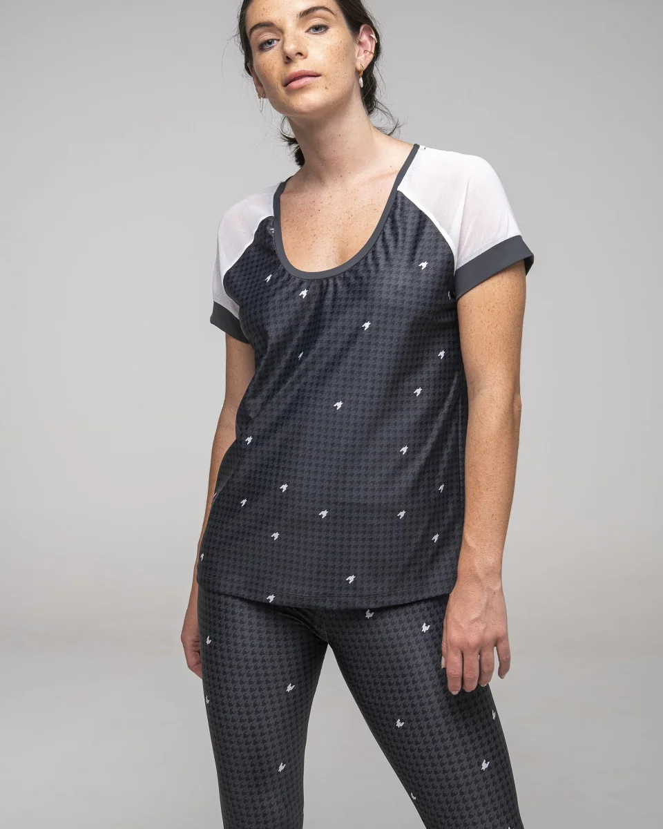 Cet imprimé élégant sera facile à combiner avec les pièces maîtresse tendance de votre garde-robe pour un look toujours réussi. Mais aussi avec les autres pièces imprimés Pied-de-Poule : le legging, la brassière et la veste.