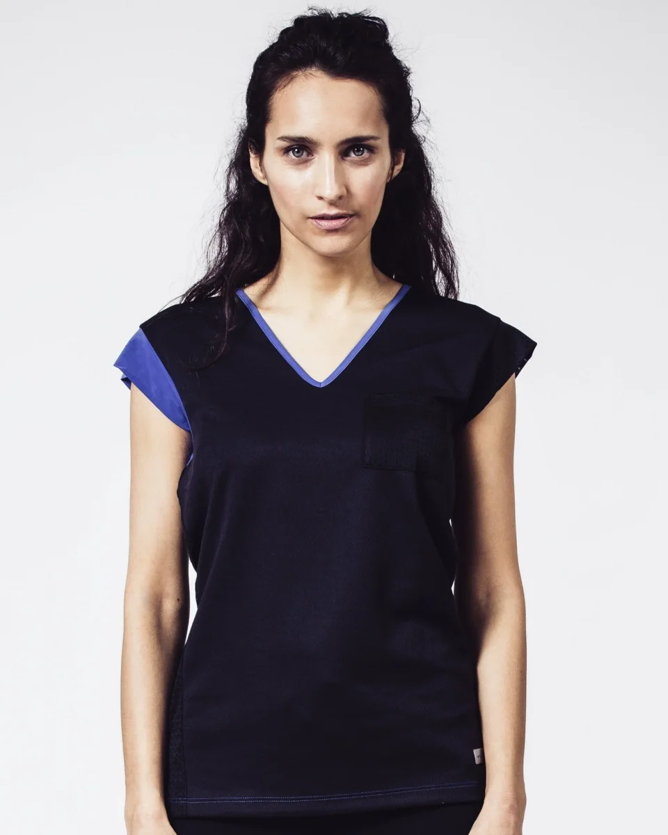 Resplendissez au quotidien dans ce T-shirt de sport féminin et fashion ! Sa subtile asymétrie, ses discrètes touches de bleu Méditerranée et l’insertion de zones filets en font la pièce maîtresse de votre garde robe.