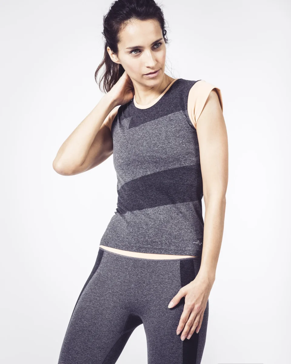 Pour compléter votre look vous avez la possibilité d’associer le t-shirt de running sans couture au legging gris chiné Bob pour un total look coordonné chic et tendance, sur les pistes de course comme en ville.