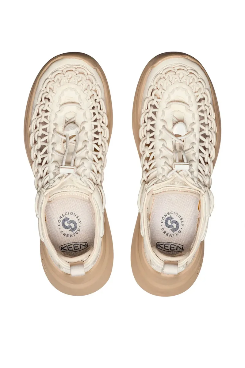 La KEEN Uneek WK W est une sandale hybride pour femme, combinant design innovant et matériaux durables. Elle offre un confort optimal grâce à sa construction unique en cordons tressés, s’adaptant parfaitement à la forme du pied.Idéale pour les activités estivales, elle assure respirabilité, maintien et liberté de mouvement.